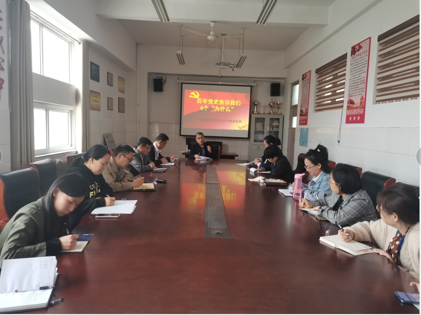 2021年4月16日下午,经济管理系全体教师齐聚党员活动室,夏中庆书记向系部参会人员讲授了题为《百年党史告诉我们6个“为什么”》的专题党课。