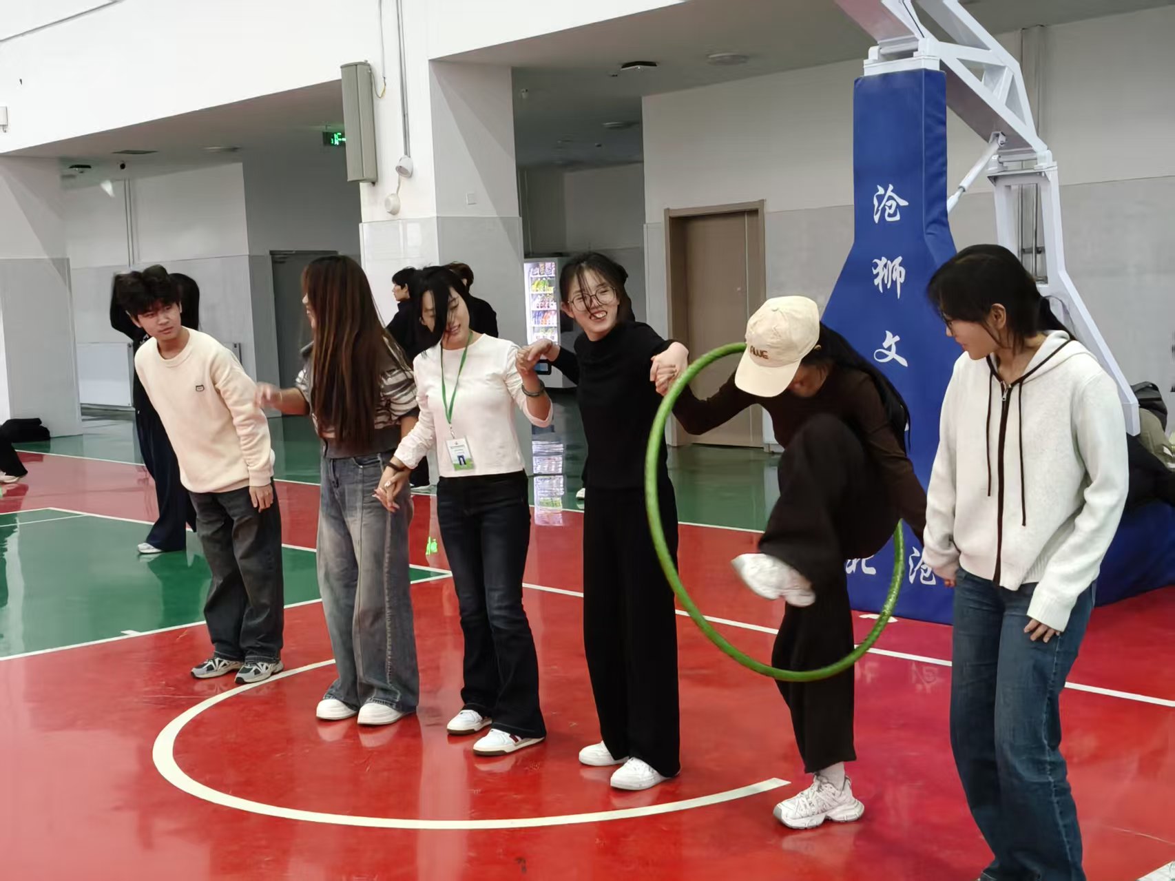 在随后的比赛中蒙眼敲锣区域内,参赛选手们在同伴的指引下,或小心翼翼摸索前行,或大步流星径直向前,偶尔的偏差引得现场笑声连连;乒乓球托球接力的赛道上,选手们屏气凝神,稳稳托着球拍前行,哪怕乒乓球偶尔落地,也能迅速捡起调整,继续向着终点奔跑;呼吸的力量项目里,各小队的成员们围在装置旁,根据分工默契调整呼吸节奏,在一次次的尝试里找到最佳配合节奏,将协作的力量展现得淋漓尽致;穿越呼啦圈的场地中,同学们手拉手连成一排,灵活地扭动身体传递呼啦圈,既要保证速度,又不能让手松开,每一次顺利传递都能收获欢呼;摸石头过河的赛场上,选手们踩着“石头”快速移动,脚步起落间尽显敏捷,场边的加油声此起彼伏,将现场氛围推向一个又一个高潮。