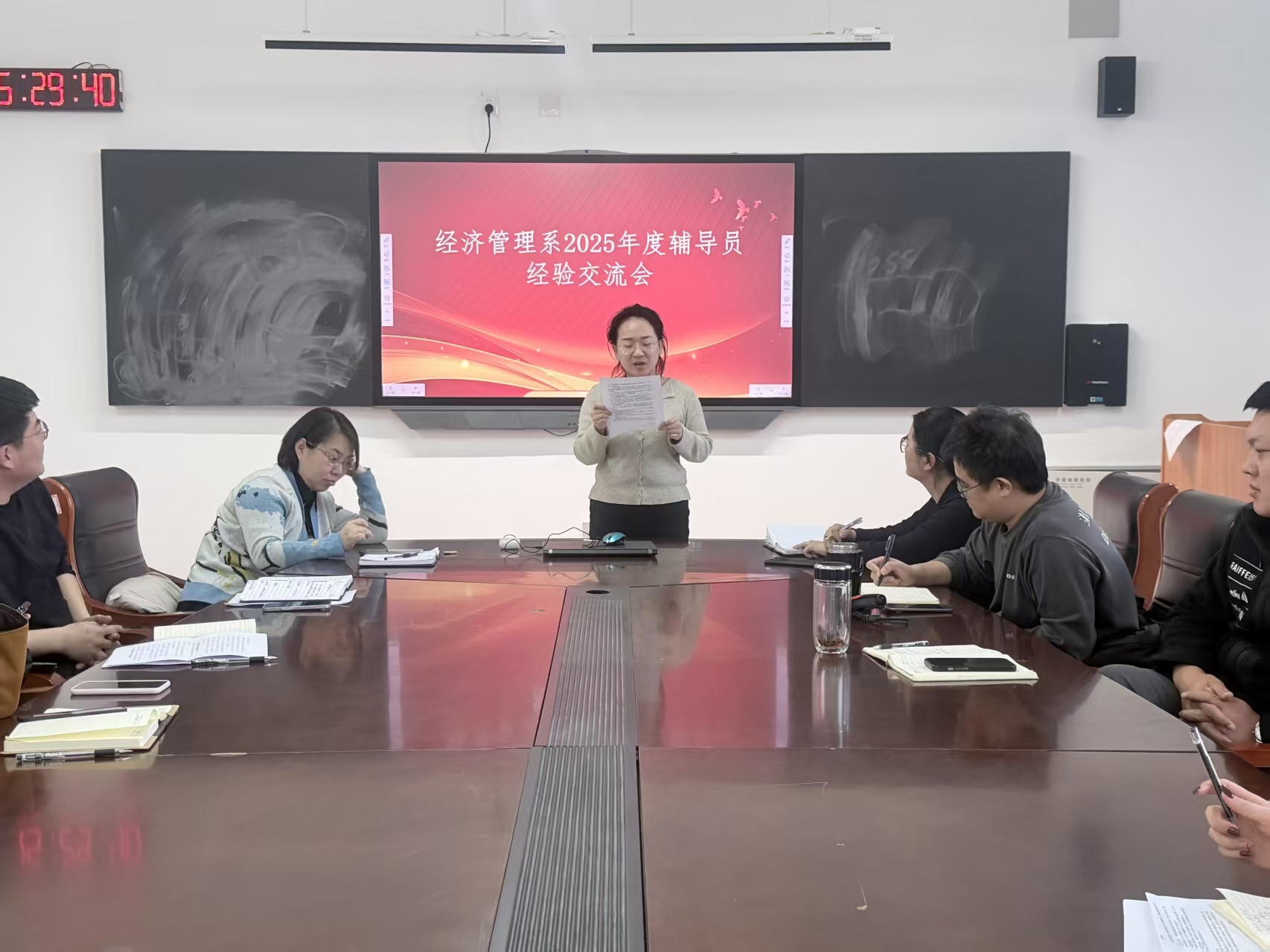 为夯实辅导员队伍建设,提升育人工作实效,2026年1月16日14时30分,沧州幼儿师范高等专科学校经济管理系召开2025年度辅导员经验交流会。系张伟新书记、李艳副书记参会,李晓宇副主任主持会议,全体辅导员到场参与。